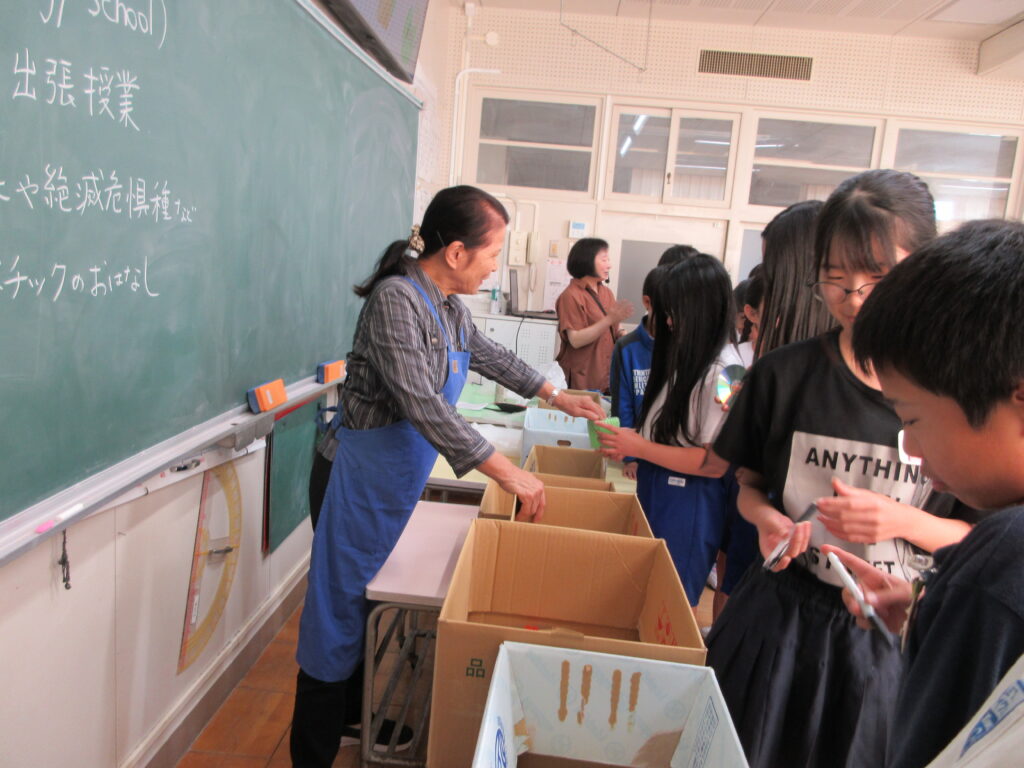 英語の授業で「絶滅の危機にある生き物の食住と直面している問題について英語で表現しよう」を学ぶ単元に合わせ、環境と生きもののつながりを感じてもらう導入として、45分間のプログラムを実施しました。